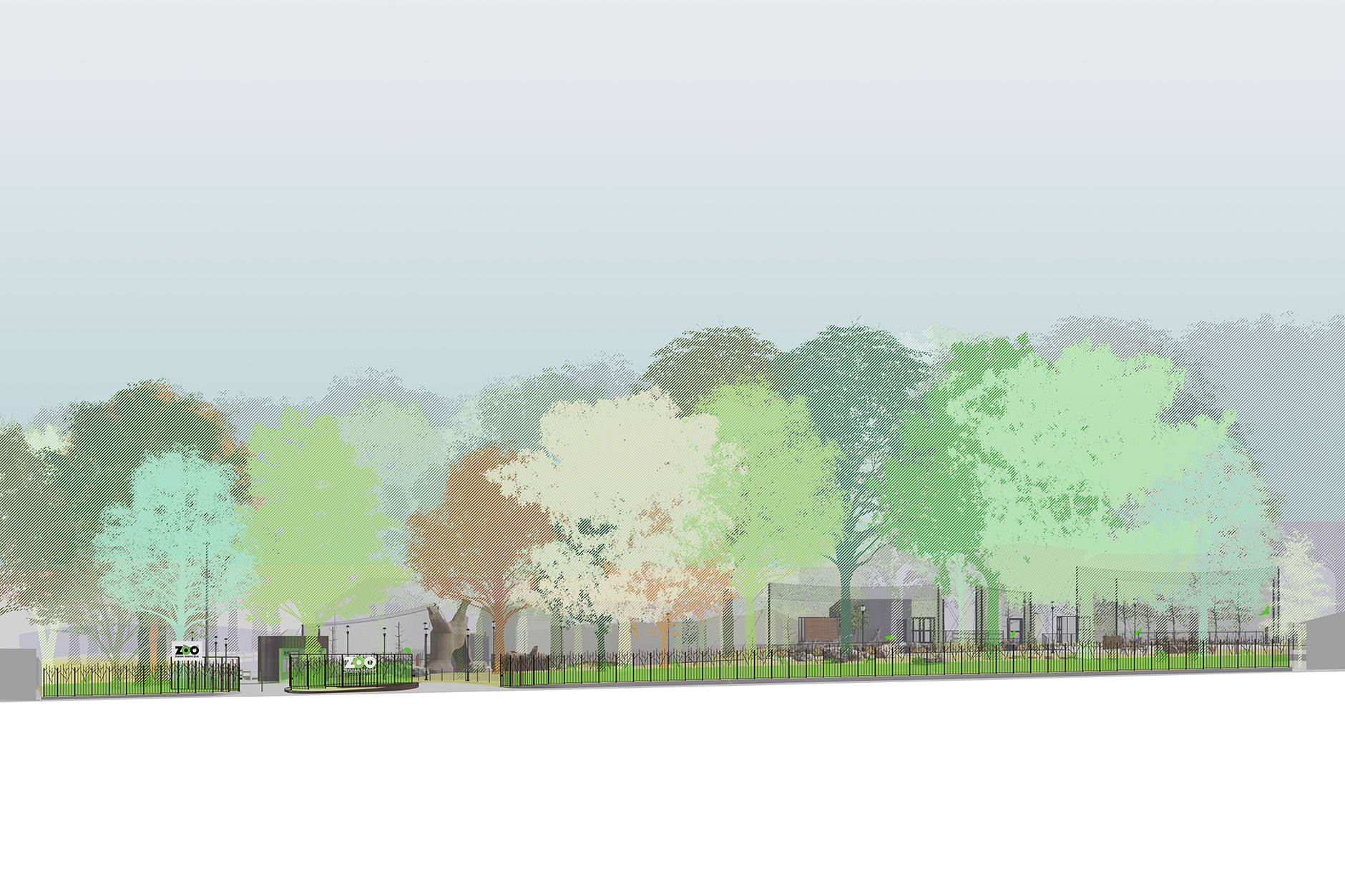 Program: New entry kiosk and plaza, animal exhibits and shelters, and discovery zones
