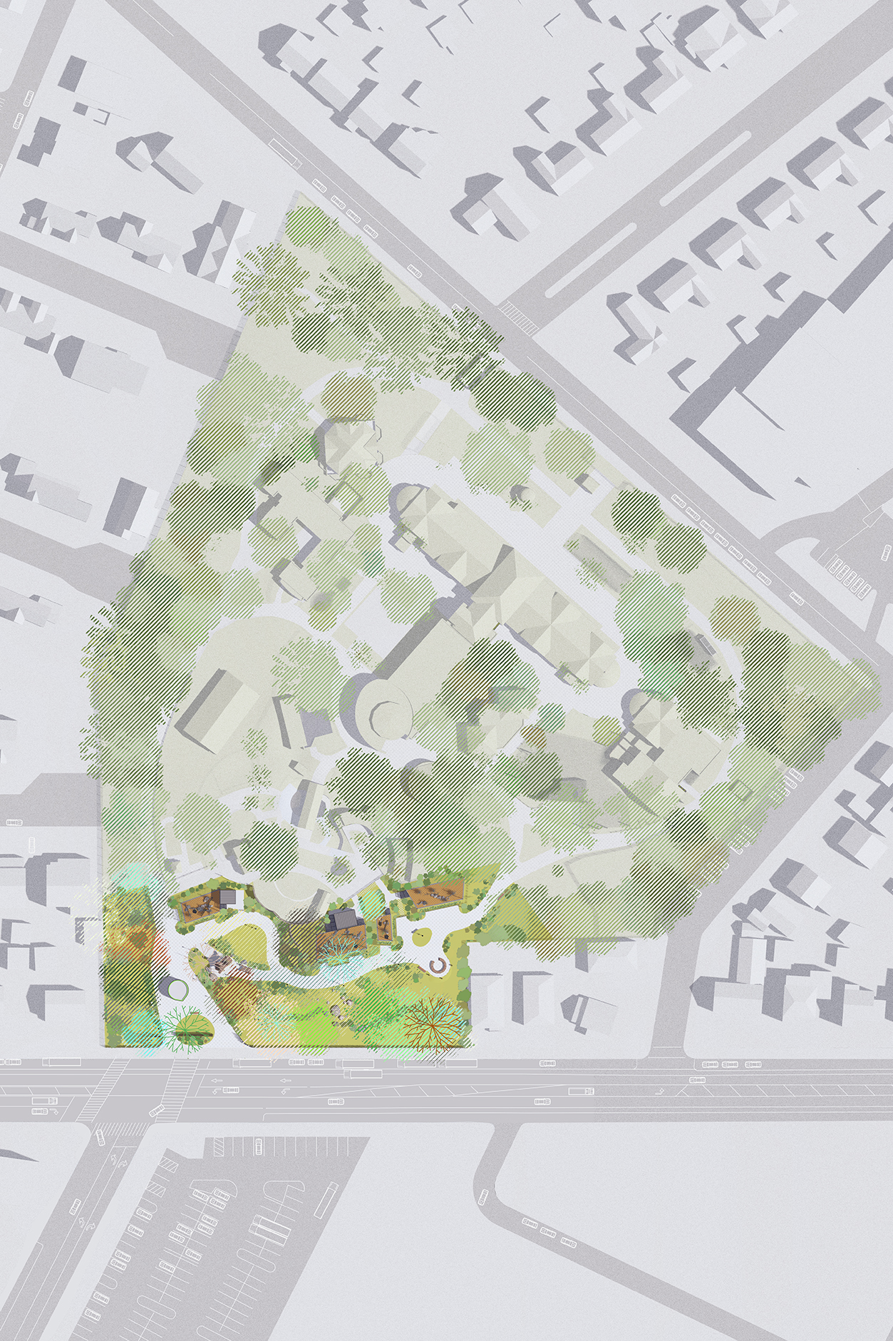 Often referred to as New York City’s ‘biggest little zoo,’ the Staten Island Zoo has been a beloved destination for locals since its establishment in 1936. The home of Staten Island Chuck and known for its African Savanna and Tropical Rainforest exhibits, the Zoo is now adding Temperate Forest Animals exhibits. nARCHITECTS is reimagining the arrival experience for visitors with a new ticketing kiosk and entrance plaza, which will connect to the new exhibits.